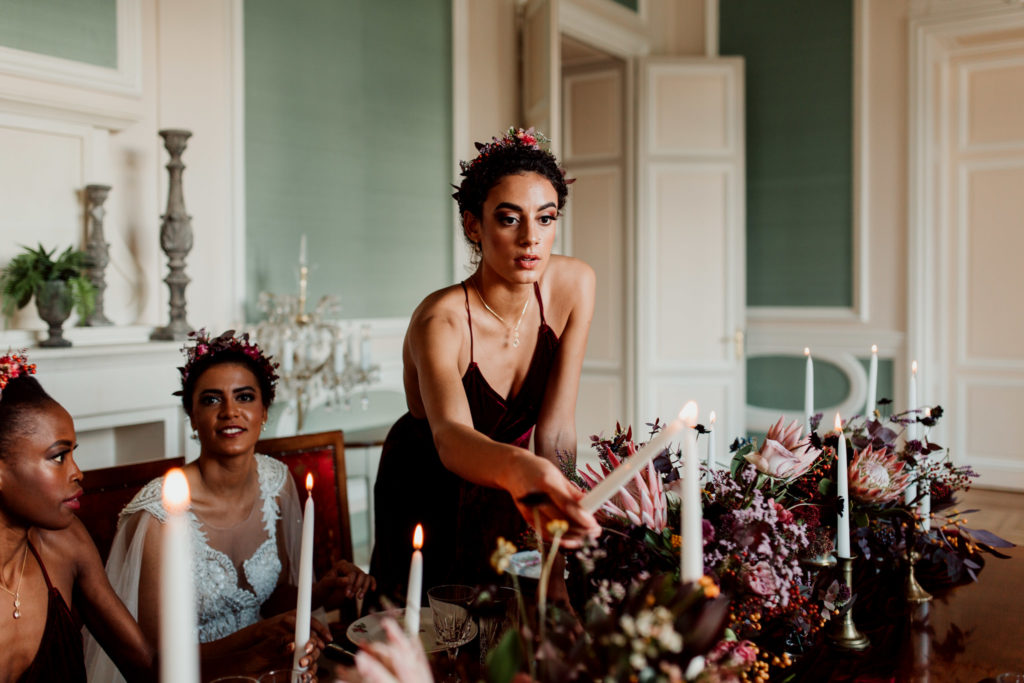 L’équipe de Wedding Planer, The Weddies, m’a contacté pour l’organisation d’un shooting photo de mariage sur le thème “Velvet”. Le projet est top, un joli château, des couleurs d’automne à base de pourpre, d’orange et de marron et une très belle équipe de prestataires et de modèles dont l’acteur Almamy Kanouté, que vous aurez peut-être vu dans le célèbre film de Ladj Ly, Les Misérables sortie en novembre 2019. L’aventure de ce mariage de velours au château de Bouffémont venait de démarrer !