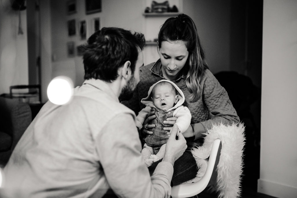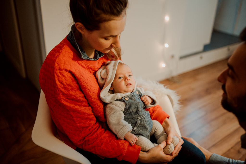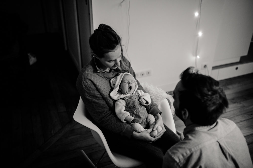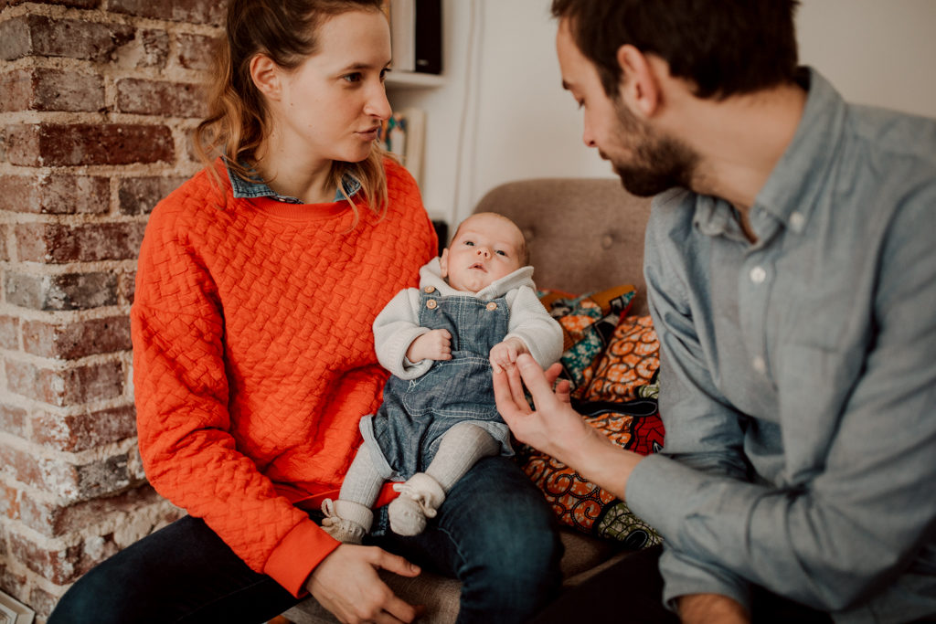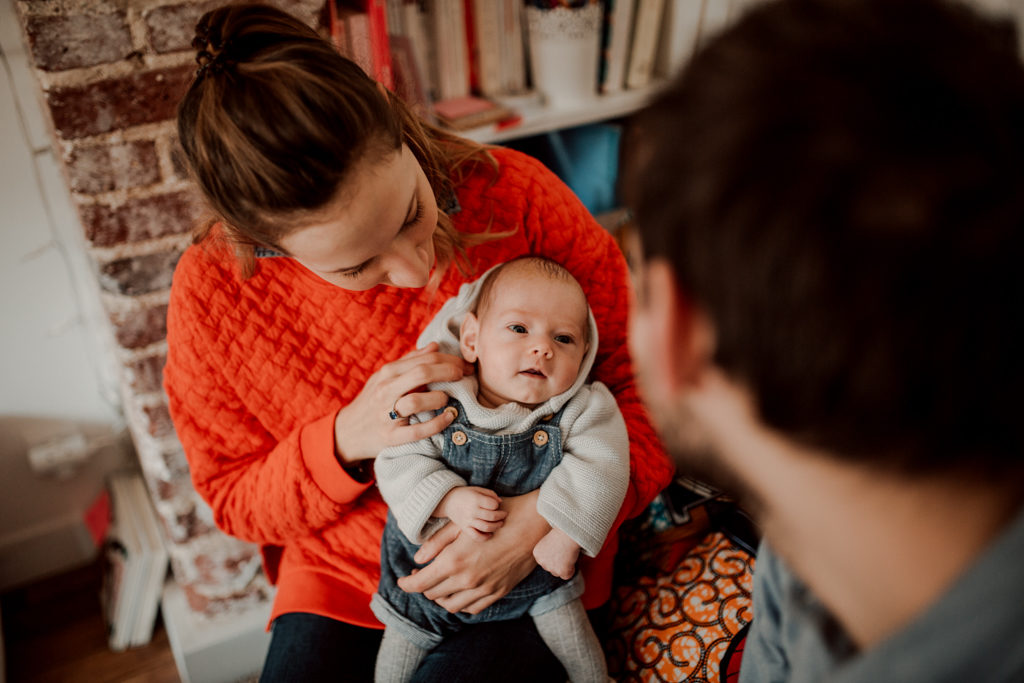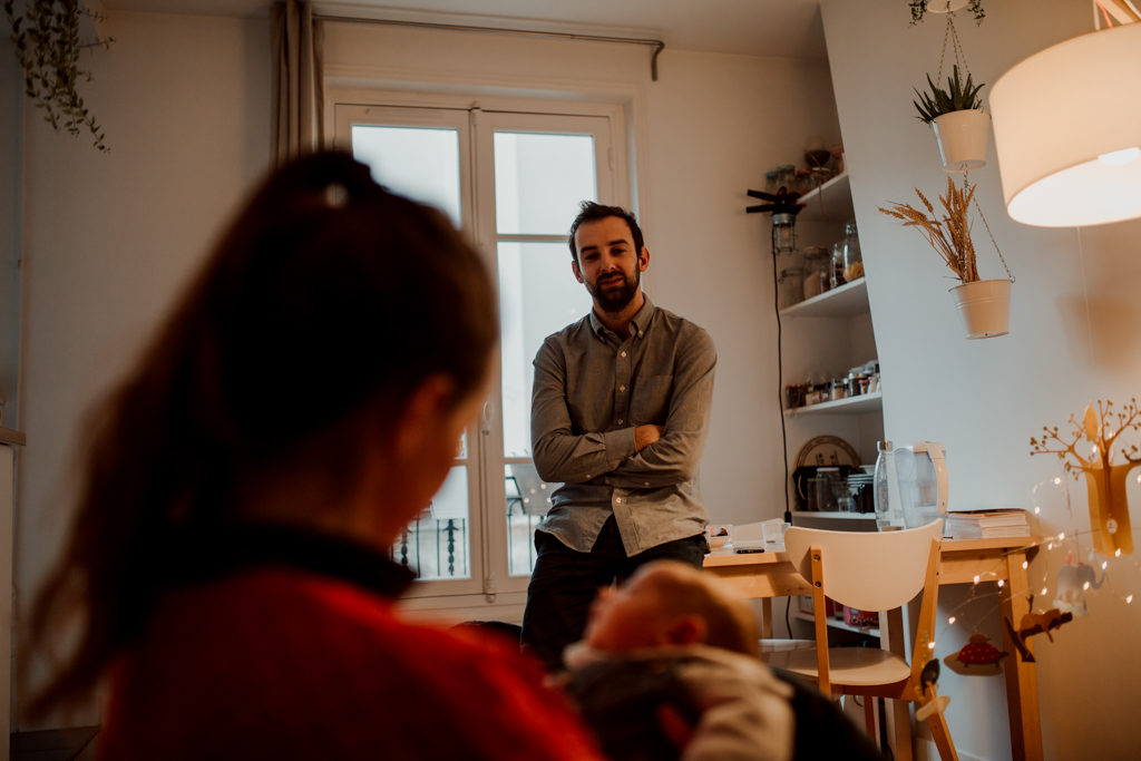 Il a été relativement simple de choisir le lieu de notre séance, avec Agathe & Samuel. En effet, la petite famille s’envolera, dans quelques semaines, vers de nouvelles aventures pour démarrer une nouvelle vie à Madrid. Le projet d’immortaliser leurs derniers instants dans cet appartement, prenait alors tout son sens. Bon, et puis, il faut aussi rappeler que nous étions en plein mois de janvier et que réaliser ce type de séance en extérieur, avec un tout petit bébé, n’est pas idéal.